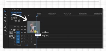 4. 초간단 컷 편집 : 컷편집만 익숙해진다면 편집은 거의 끝!. 영상클립을 타임라인에 드래그앤 드롭만 해도 크기와 길이에 맞춰 딱 들어간다.(시퀀스 크기 유지!!)