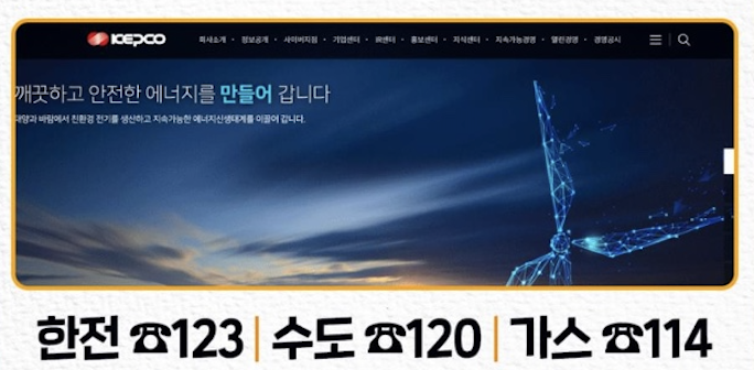 - 한전 ☎️ 123 수도 ☎️ 120 가스 ☎️ 114