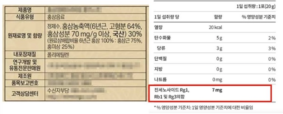 1) 홍삼은 진세노사이드 성분을 보세요