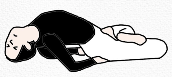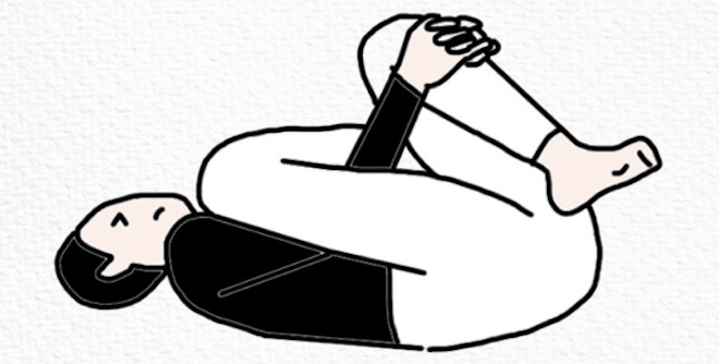 1) 누운 상태로 가부좌 자세를 취하고 다리 내리기